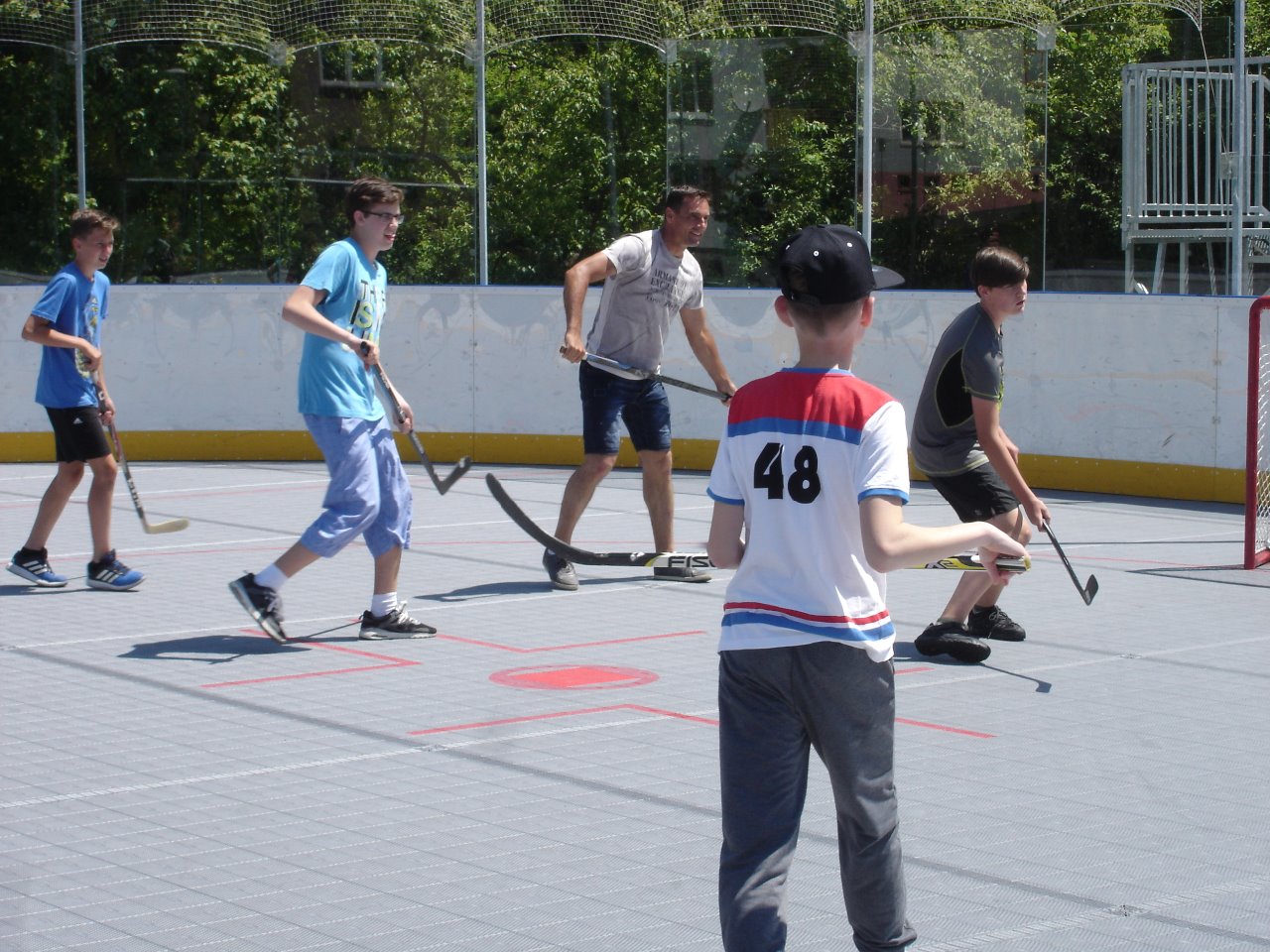 I v hokejbalové aréně "U Rybníčku" bylo od rána plno, děti si vyzkoušeli treninková cvičení a mohli si i krátce hokejbal zahrát. Velké oživení přinesl mezi hokejbalové adepty Roman Šebrle, který se okamžitě chopil hokejky a s dětmi si zahrál.